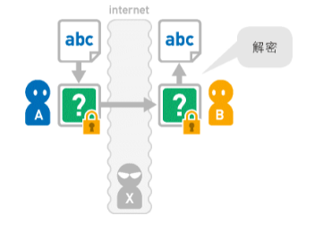 A 需要通过某种手段将密钥交给 B。和密文一样,A 又在互联网上向 B 发送了密钥。